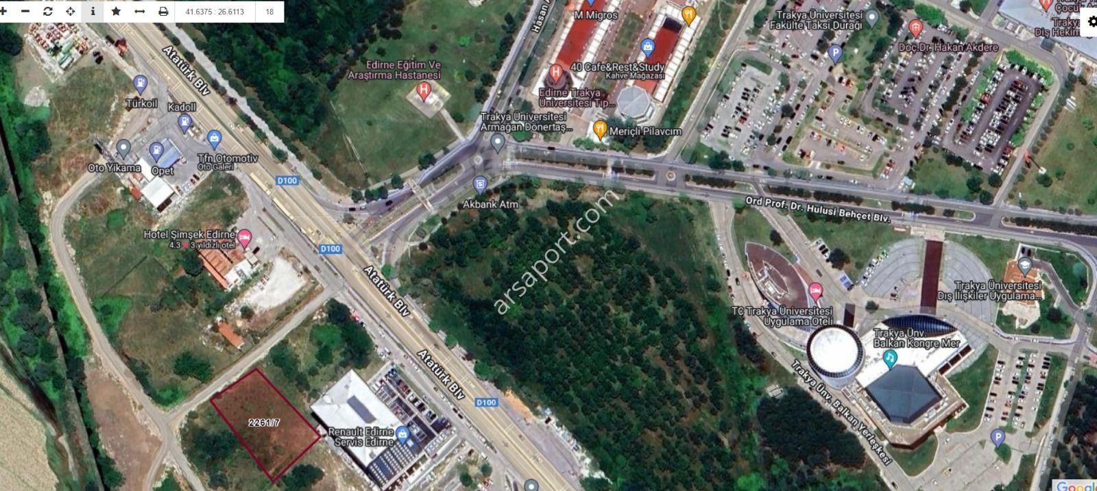 Edirne merkez Trakya Üniversitesi Tıp fakültesinin tam karşısında