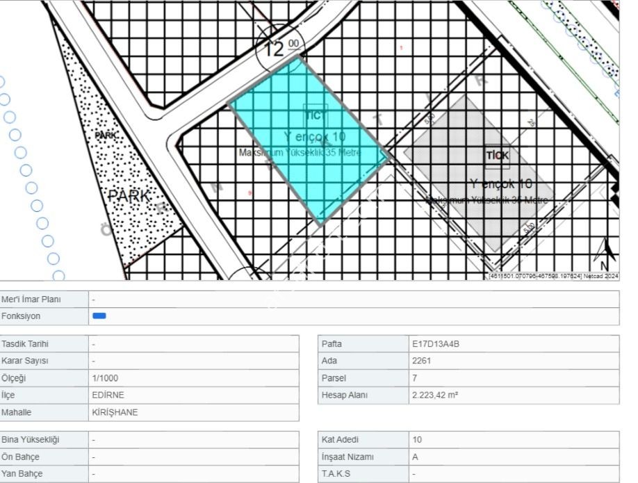 2261 ada, 7 parsel ve 2.223 metrekare