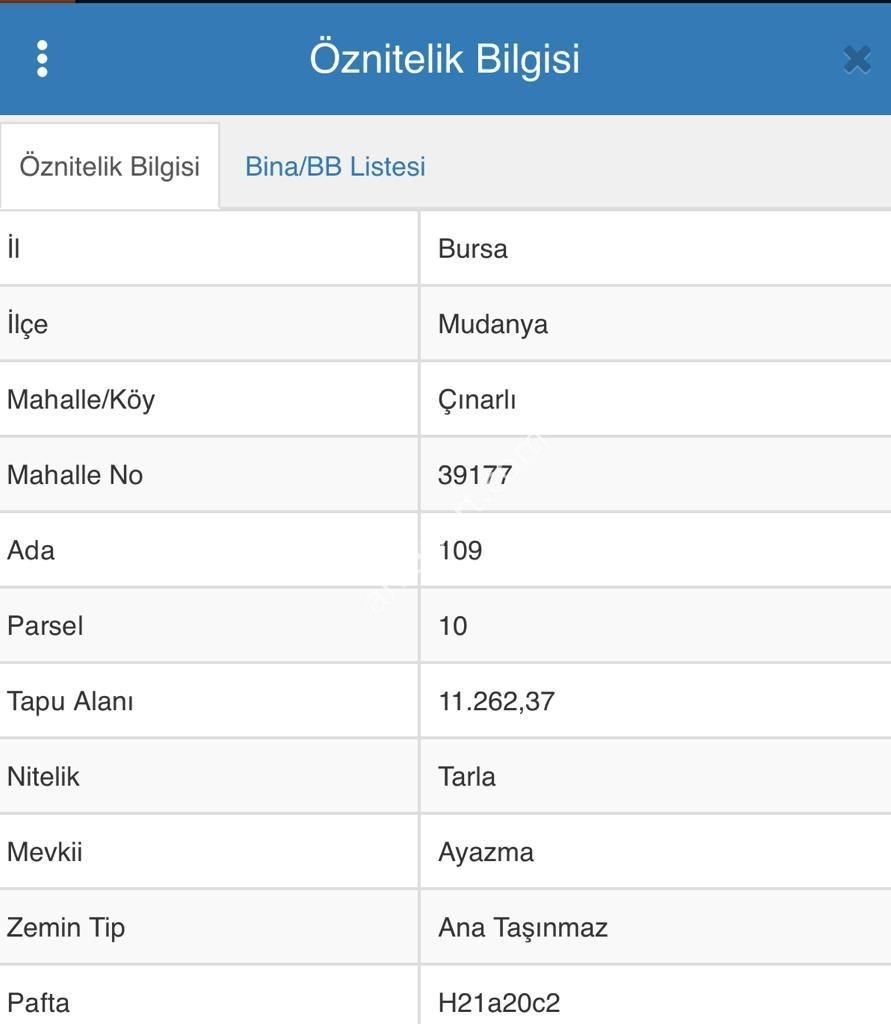 MUDANYA ÇINARLI'DA SATILIK TARLA.